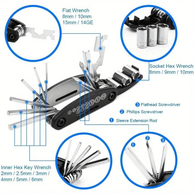 Multifunctional 16 In 1 Portal Bike Tool Kit