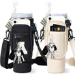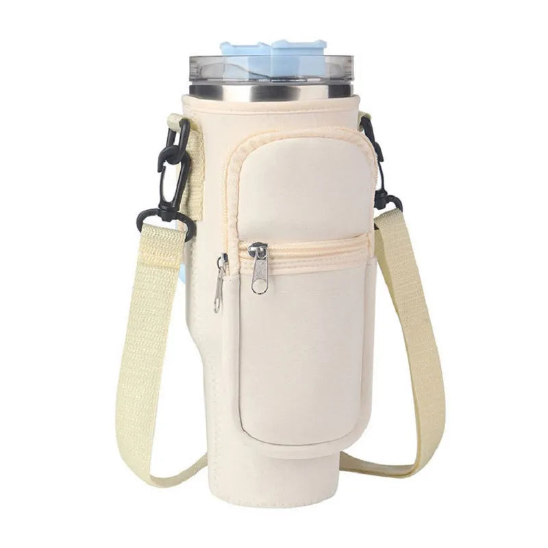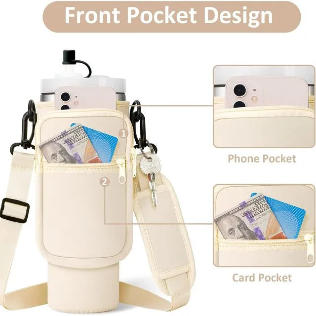 40oz Water Bottle Carrier Bag for Stanley Quencher Tumbler with Adjustable Strap & Pockets | Neoprene Sleeve Cup Holder Pouch ( Random Color )