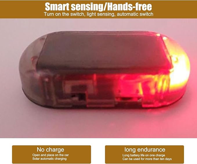 Runs all night on stored solar power, ensuring round-the-clock protection. No draining your car battery, only protecting it! 🌙