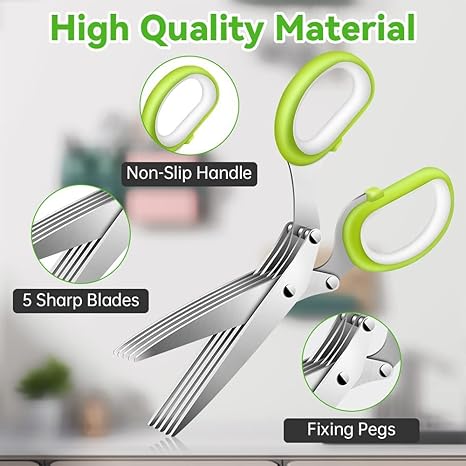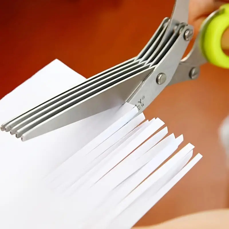 Easily cut through vegetables with this multifunctional scissor. Equipped with 5 blades, it makes your chopping faster and more efficient. Perfect for salads, garnishes, and stir-fries! 🥗🧄🥕