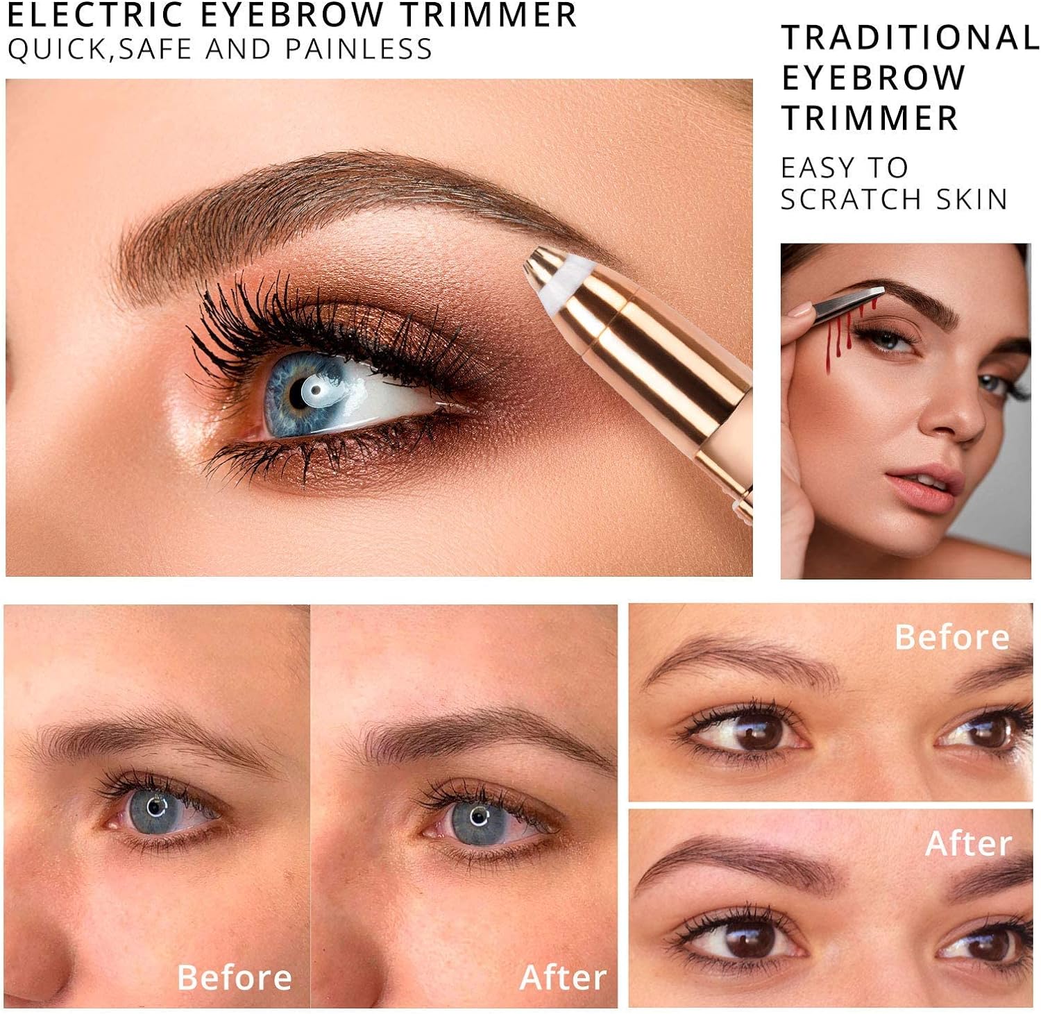 • Stylish & Compact The eyebrow trimmer for women is made of sturdy ABS material and has a fashionable chic, feminine look and slimline design. The color combination of white and rose gold is more beautiful and delicate. The ladies hair remover have compact size and weighting 110g, lightness make it easy to carry.